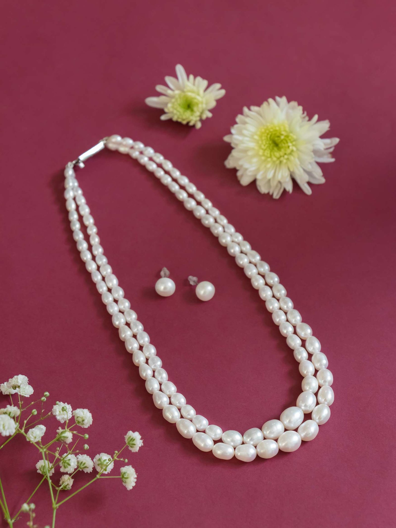 Timeless 15-16 inch necklace crafted with natural, rice-shaped freshwater pearls. These high-quality pearls are warranted for a lifetime and secured with a hook.