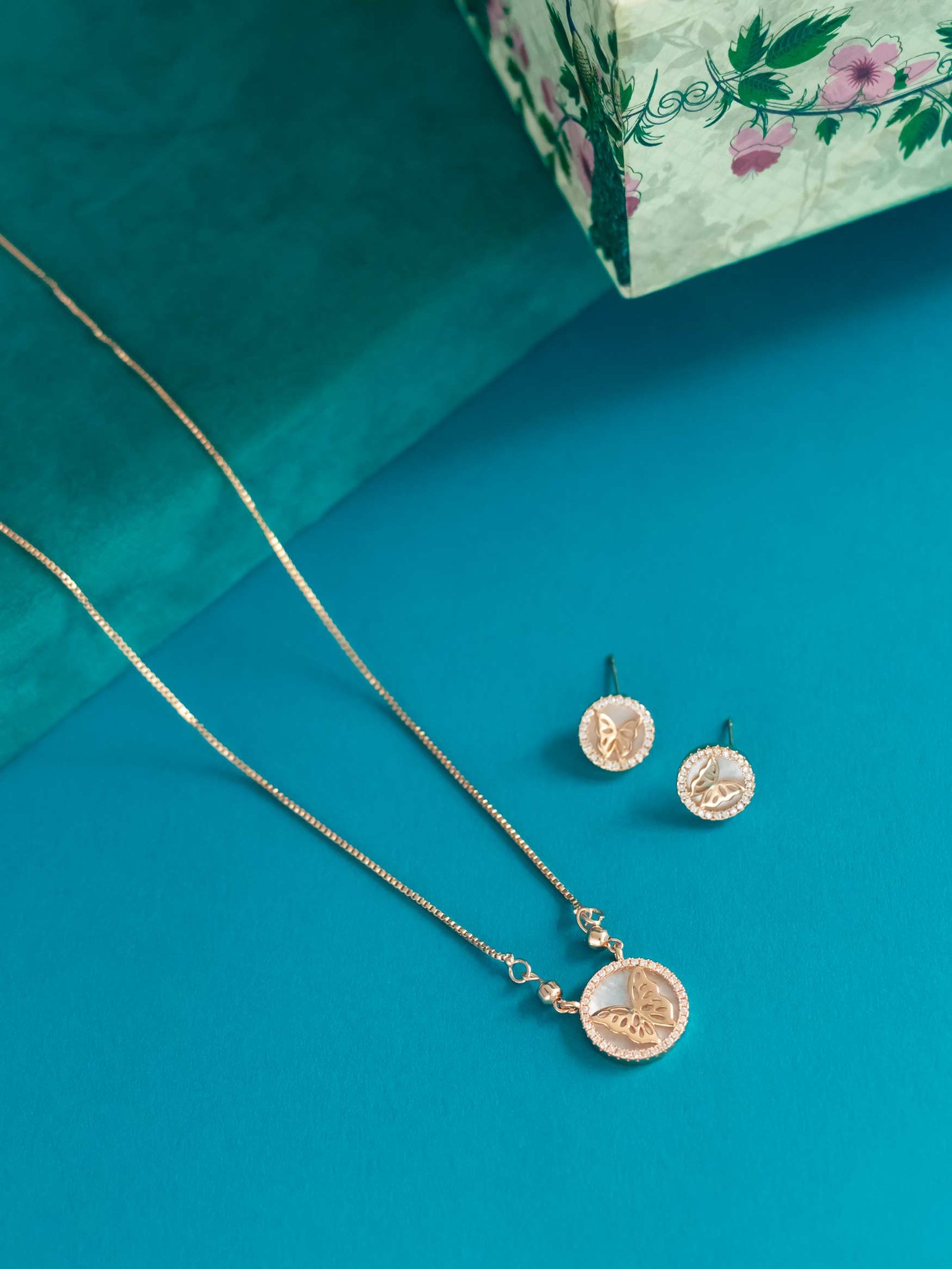 Delicate chain set with a graceful butterfly design, American diamond, and mother of pearls.