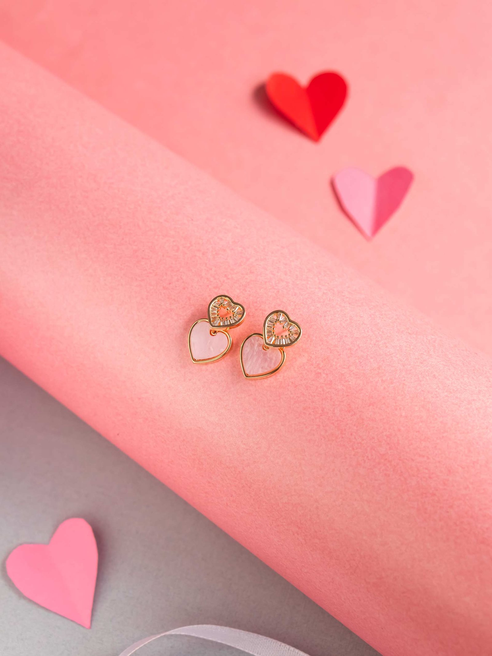 Romantic heart-shaped earrings crafted with brilliant American diamonds. These shimmering studs are a timeless expression of love and the perfect finishing touch for any outfit.