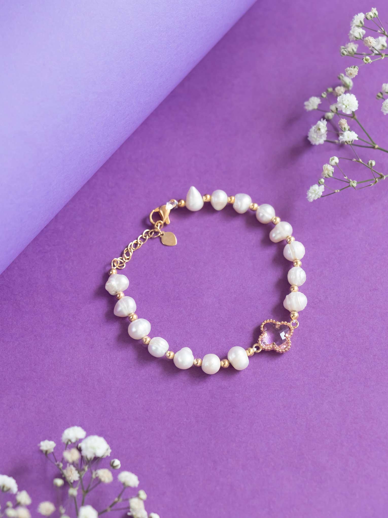 Exquisite freshwater pearl necklace featuring a delicate floral pendant in black, purple, green, and red. Features an adjustable chain for a custom fit.
