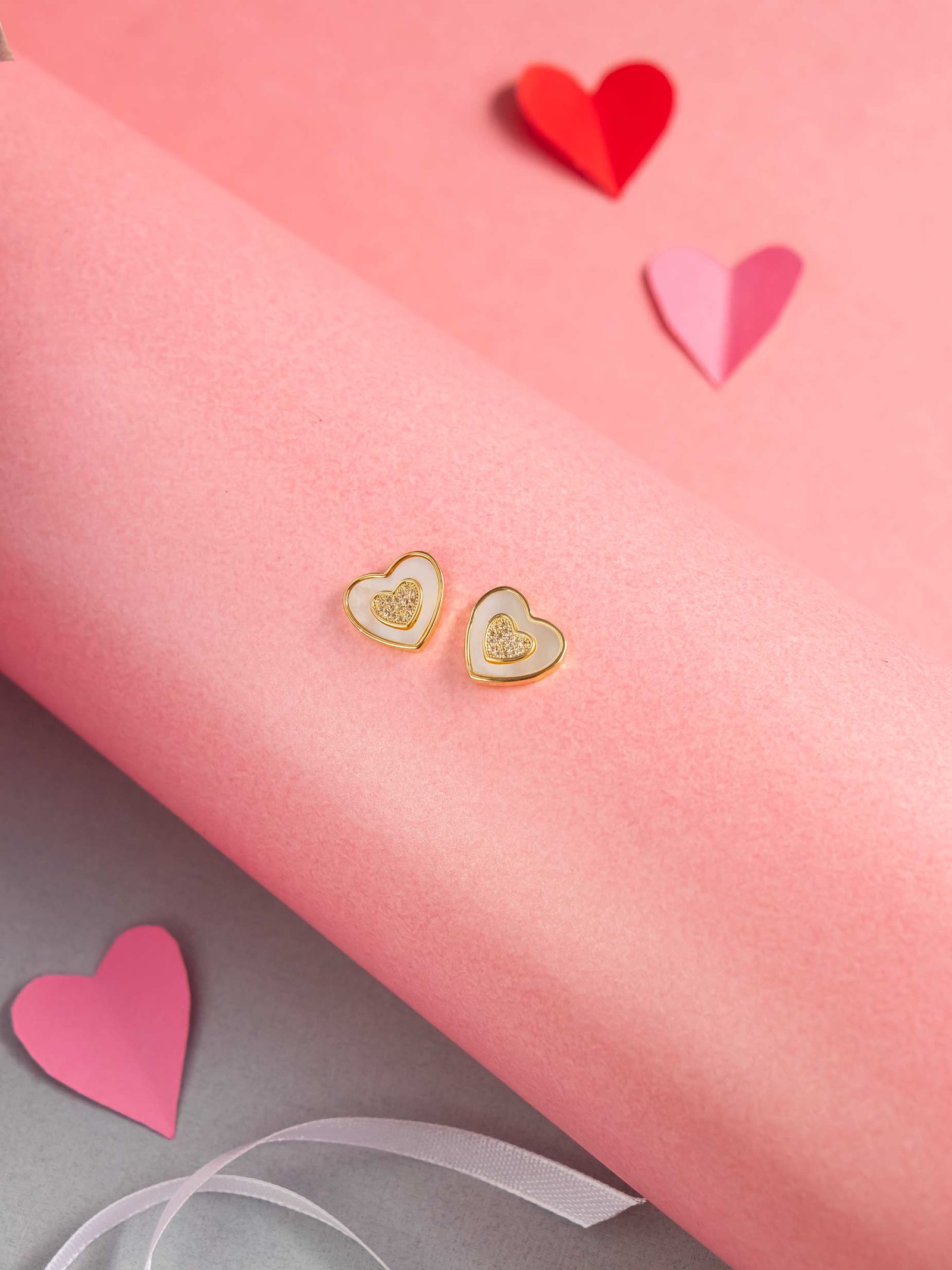 Sparkling heart-shaped American diamond earrings that capture the light beautifully. A classic and sentimental accessory that never goes out of style.