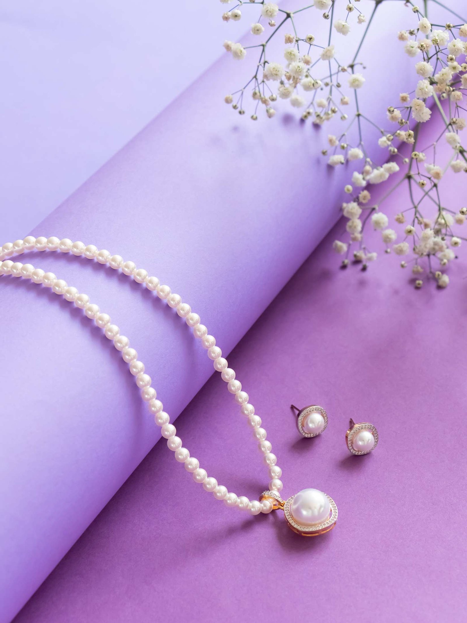 Stunning 15-inch pearl necklace featuring a sophisticated square-shaped pendant. The centerpiece is beautifully framed by shimmering American diamonds.