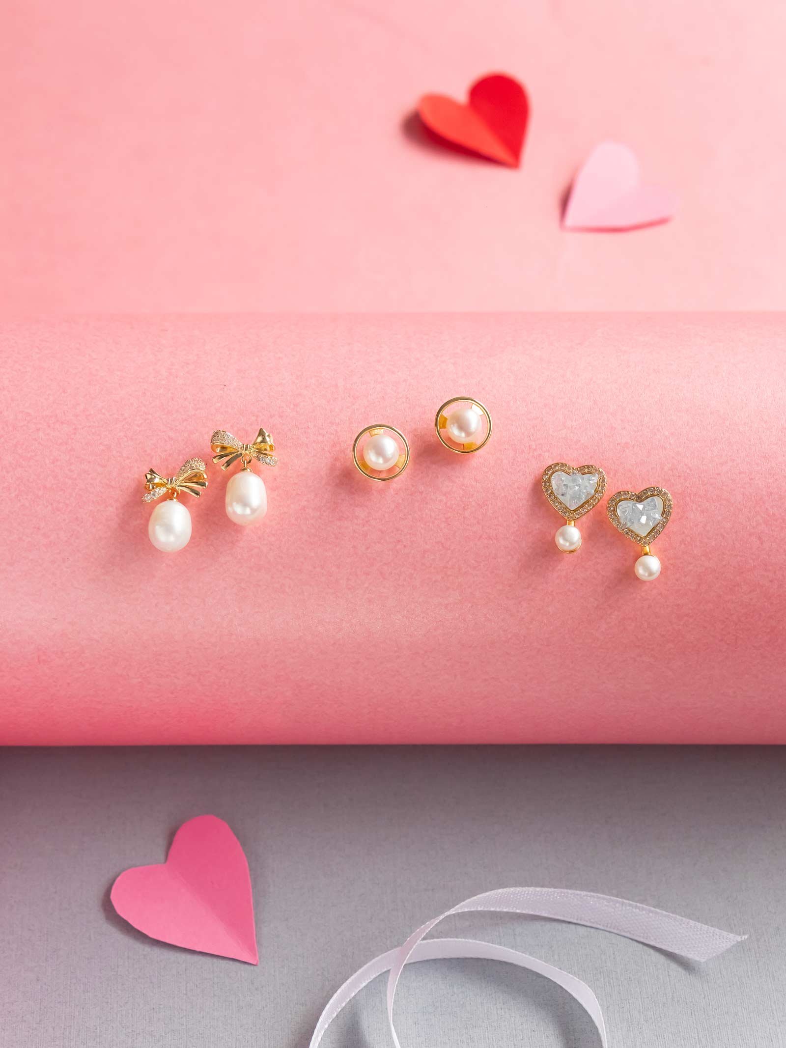 An exquisite earring combo featuring the timeless beauty of freshwater pearls and the brilliance of American diamonds. Offers multiple styling options to suit every mood.