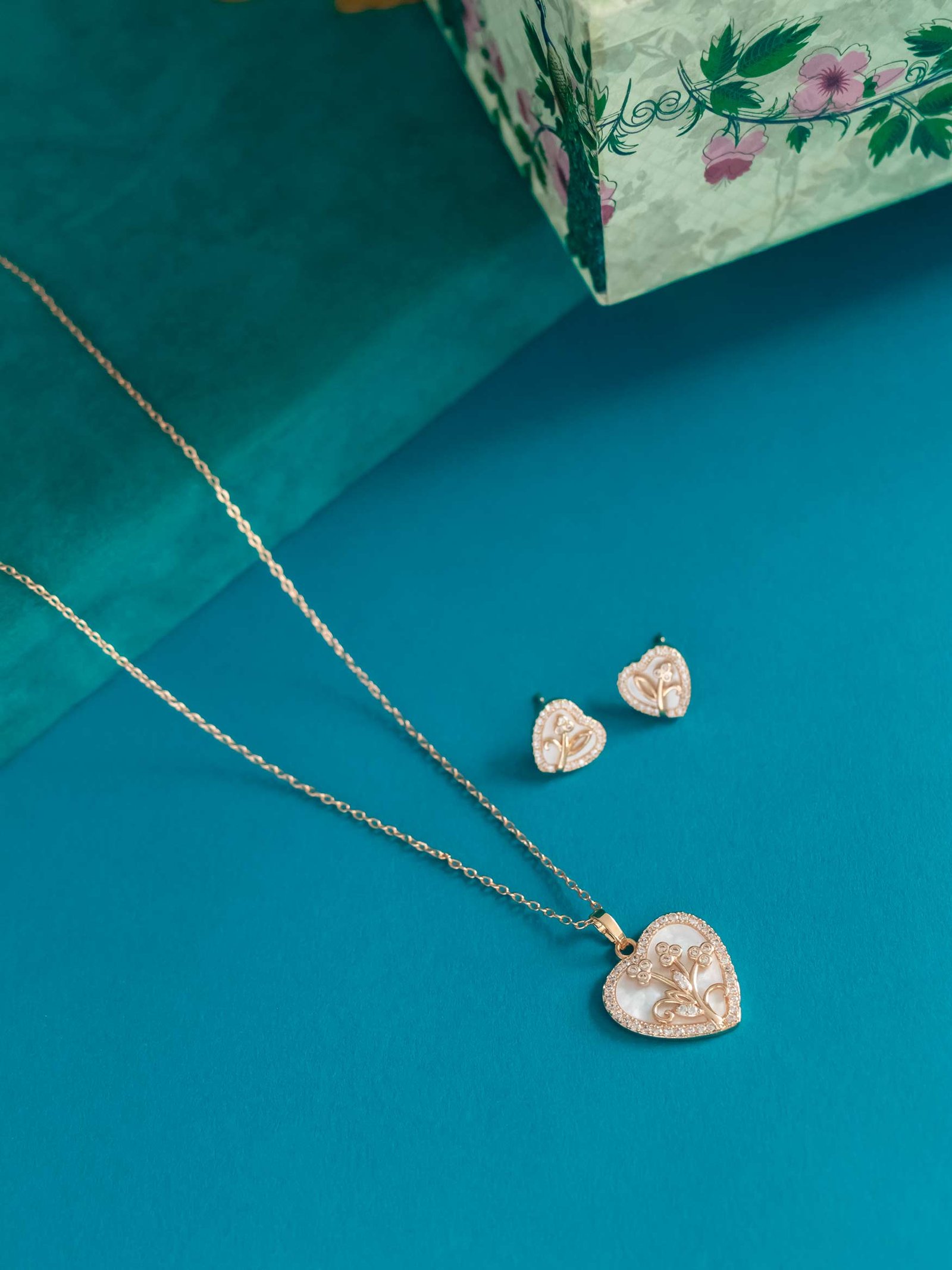 Charming chain set with a heart shaped pendant of American diamond and mother of pearls.