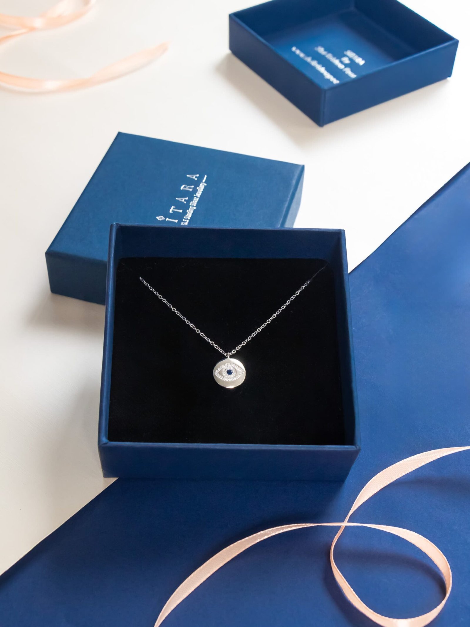 A chic 92.5 sterling silver chain with a sparkling American diamond and evil eye pendant.