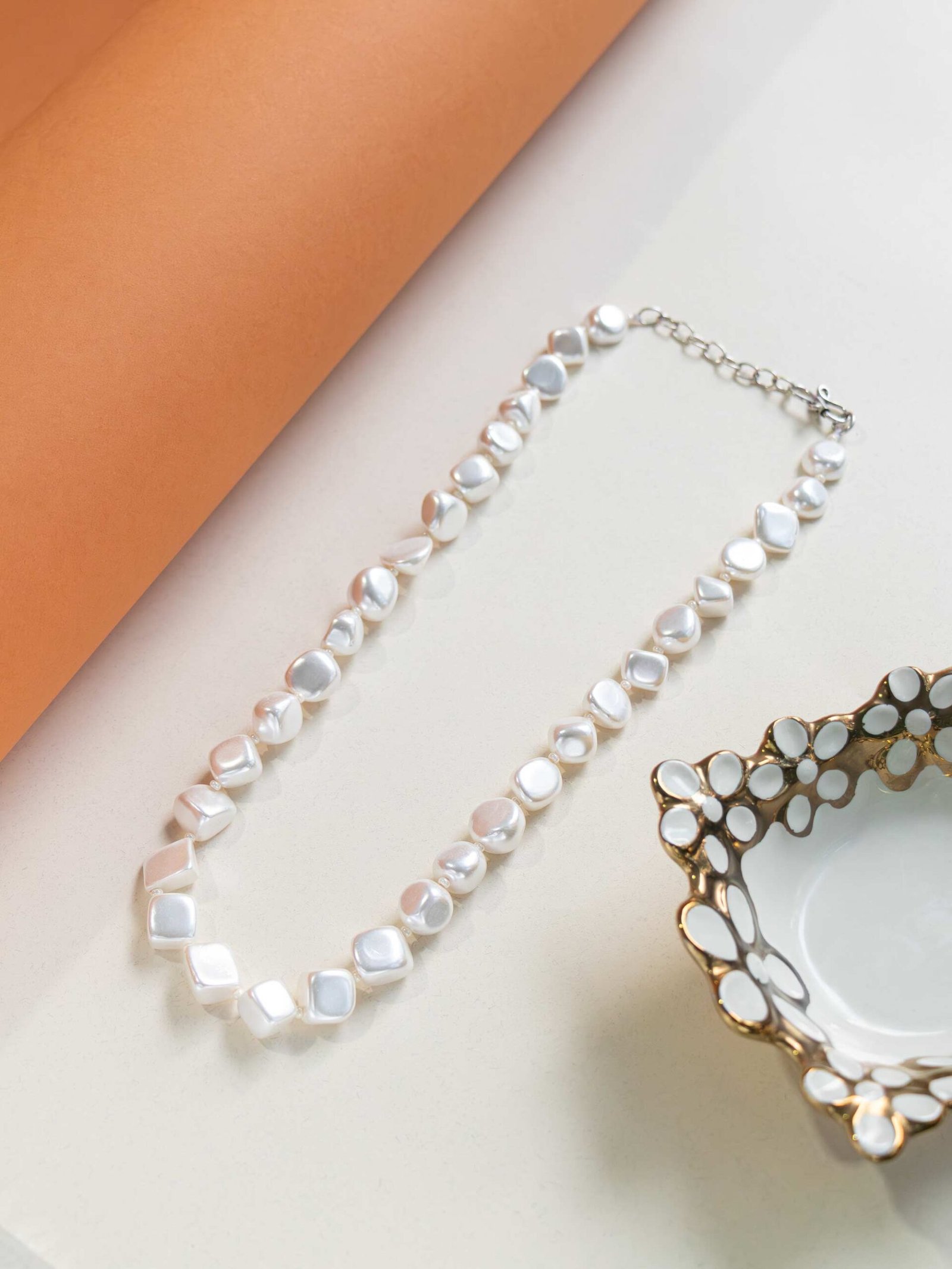 Classic and clean necklace set featuring uniform white beads. A versatile piece that pairs effortlessly with any ethnic or western ensemble.