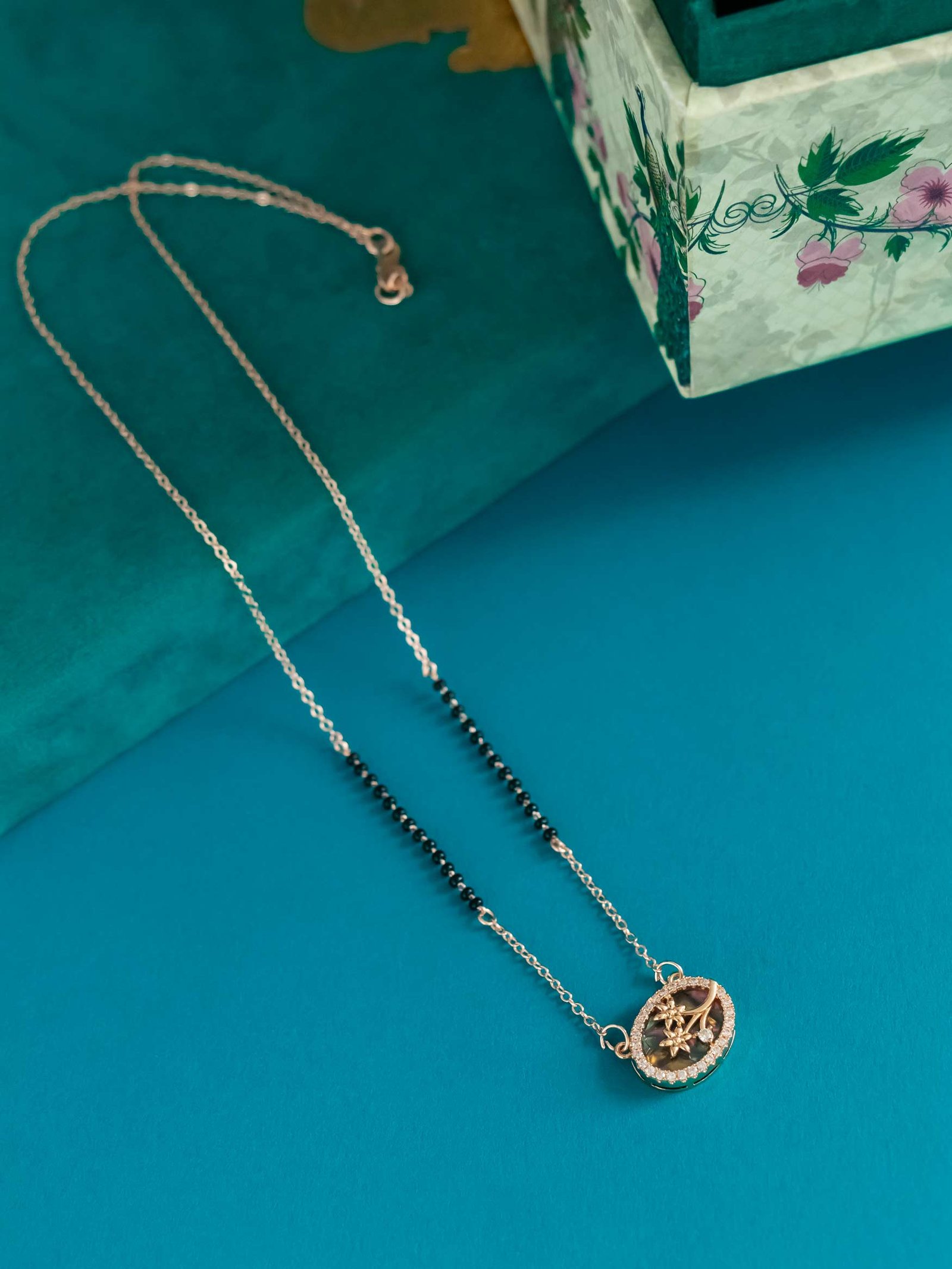 Delicate golden polish Mangalsutra for daily use adorned with American diamonds.